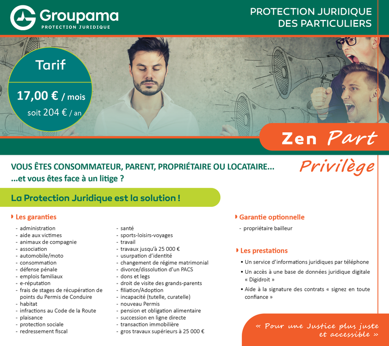 L'assurance protection Juridique Zen privilège est une Formule d'Assurance juridique garantissant vos droits dans les domaines suivants :